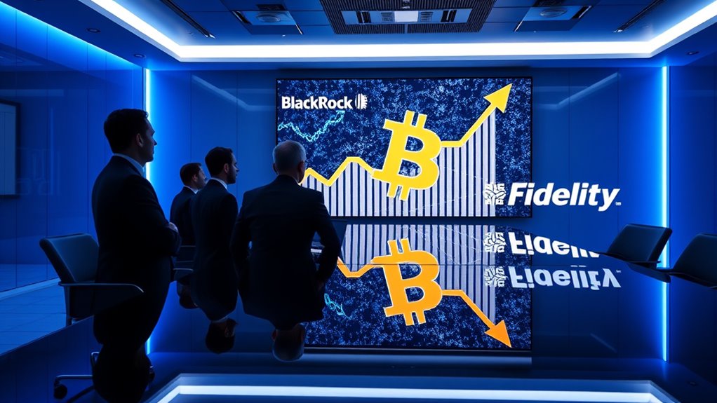 Institutional investors are increasingly embracing Bitcoin, led by BlackRock and Fidelity’s innovative ETF offerings. These ETFs simplify access, allowing you to invest without directly owning Bitcoin, which helps manage risks like market volatility and regulatory uncertainty. As these giants push forward, more institutions see Bitcoin as a legitimate asset class. If you want to understand how this shift could impact your investments, there’s much more to explore beyond this point.
