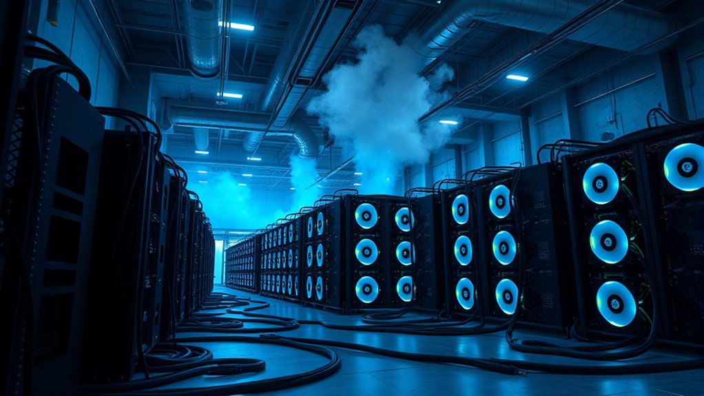 Crypto mining consumes over 1,170 TWh of electricity, raising serious environmental issues. This high energy use mainly relies on non-renewable sources like coal and natural gas, contributing to greenhouse gas emissions and climate change. The ecological impact affects ecosystems and public health. To understand how the industry can reduce its footprint and adopt cleaner sources, explore further insights into potential solutions and ongoing challenges.