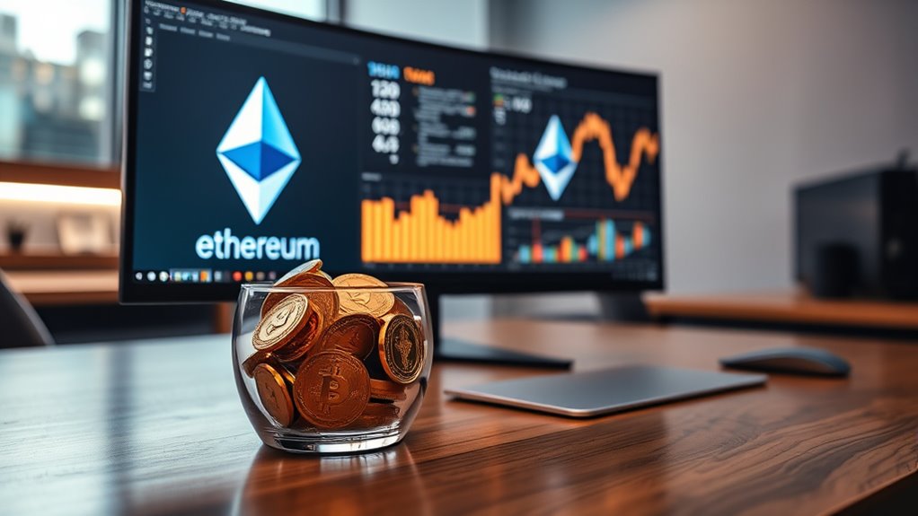 Ethereum ETFs now include staking features, allowing you to earn passive yields directly from your holdings. This simplifies participation in Ethereum’s proof-of-stake network by removing the need to manage nodes or handle technical staking tasks. You can enjoy steady income through staking rewards while maintaining exposure to Ethereum’s price movements. While this integration offers great benefits, understanding the evolving regulations and market risks is important—there’s more to uncover about how these products can work for you.