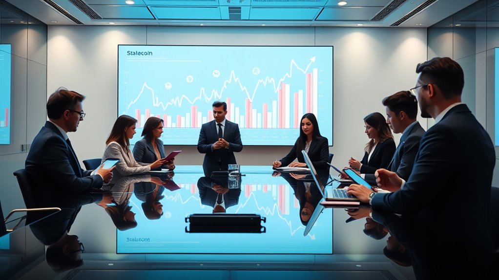Just like a trusted compass guides a ship through uncertain waters, adopting stablecoins can steer your business toward faster transactions and reduced costs. Imagine a retailer who embraced stablecoins, cutting settlement times from days to minutes—transforming their cash flow and customer experience. As more enterprises follow suit, stablecoins become your reliable partner in steering the evolving financial landscape, helping you stay ahead of the curve and seize new opportunities with confidence.