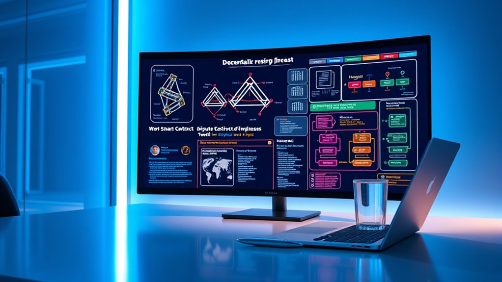 Kleros offers a decentralized dispute resolution platform for smart contracts that guarantee fair, transparent outcomes. It uses a crowd-sourced jury system where token holders review disputes and make impartial decisions based on evidence and established rules. This process is automated, tamper-proof, and fast, reducing costs and delays compared to traditional courts. By integrating blockchain technology, Kleros promotes trust and fairness within decentralized ecosystems. Exploring further reveals how these mechanisms work together for effective dispute management.