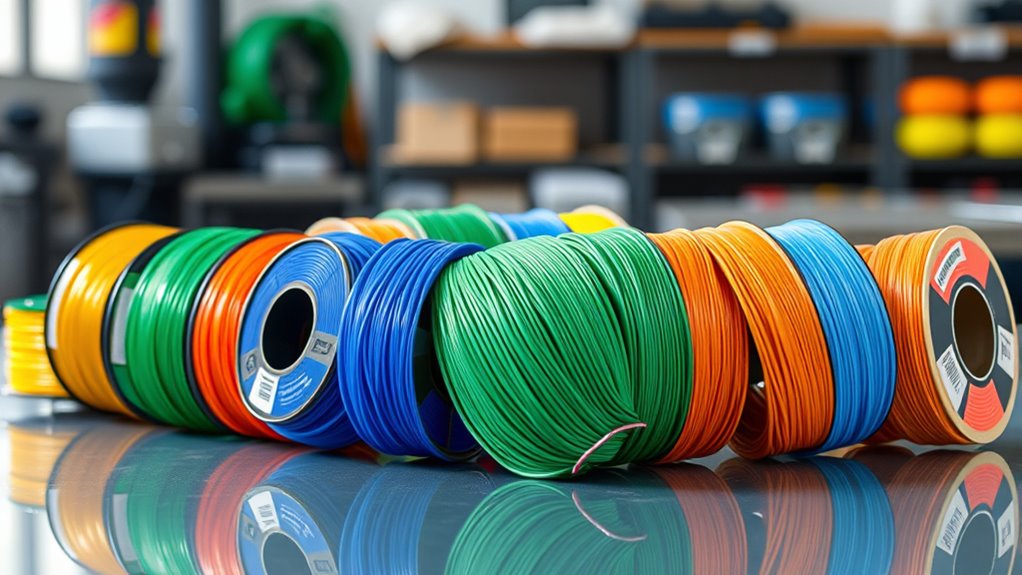 If you’re looking for the best 3D printing filaments of 2025, I’ve found top choices recognized for their quality and durability. From eco-friendly PLA options like Creality and SUNLU to vibrant Silk PLA and glow-in-the-dark filaments, there’s something for every project. Durable PETG and versatile options from ELEGOO and eSUN also stand out. Keep exploring—I’ll share all the essential details that can help you make the perfect choice.