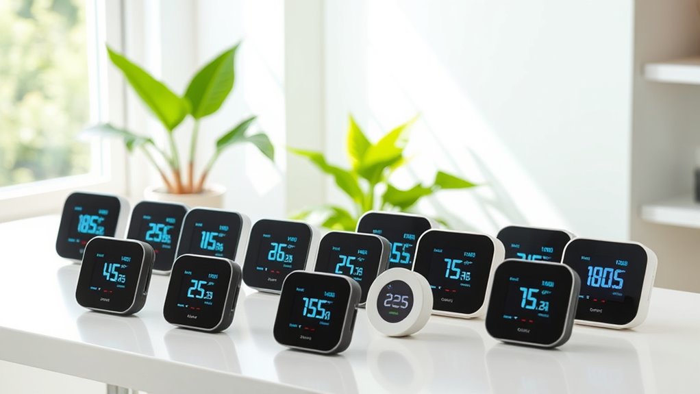 If you’re searching for the 15 best air quality monitors to keep your indoor air fresh and healthy in 2025, I recommend models that combine multiple sensors like CO2, PMs, VOCs, and formaldehyde, along with real-time alerts and smart home compatibility. Devices such as the Bonoch 16-in-1, Amazon Smart Air Quality Monitor, and SAF Aranet4 offer accurate readings, sleek designs, and user-friendly features. Keep exploring, and you’ll discover how these monitors can transform your indoor environment.