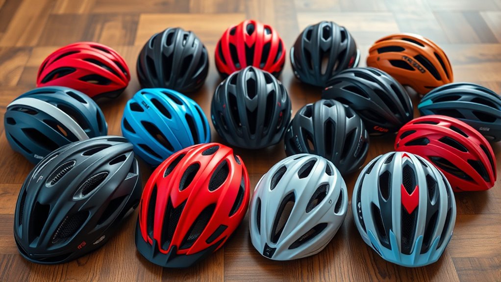 When choosing a bike helmet, style options play a crucial role in both how it looks and how well it suits your riding habits. Helmets come in various designs, from sleek urban models to sporty mountain bike styles and casual options. Color choices range from bright, high-visibility hues to subtle matte finishes, helping you match your style or boost safety. Design features like visors, integrated LED lights, and customizable color schemes allow you to blend safety with personal expression. The aesthetic appeal of a helmet can influence how often you wear it, making style an important factor for consistent safety. Ultimately, finding a helmet that reflects your personality while fitting your riding needs ensures you’ll wear it comfortably and confidently every time.