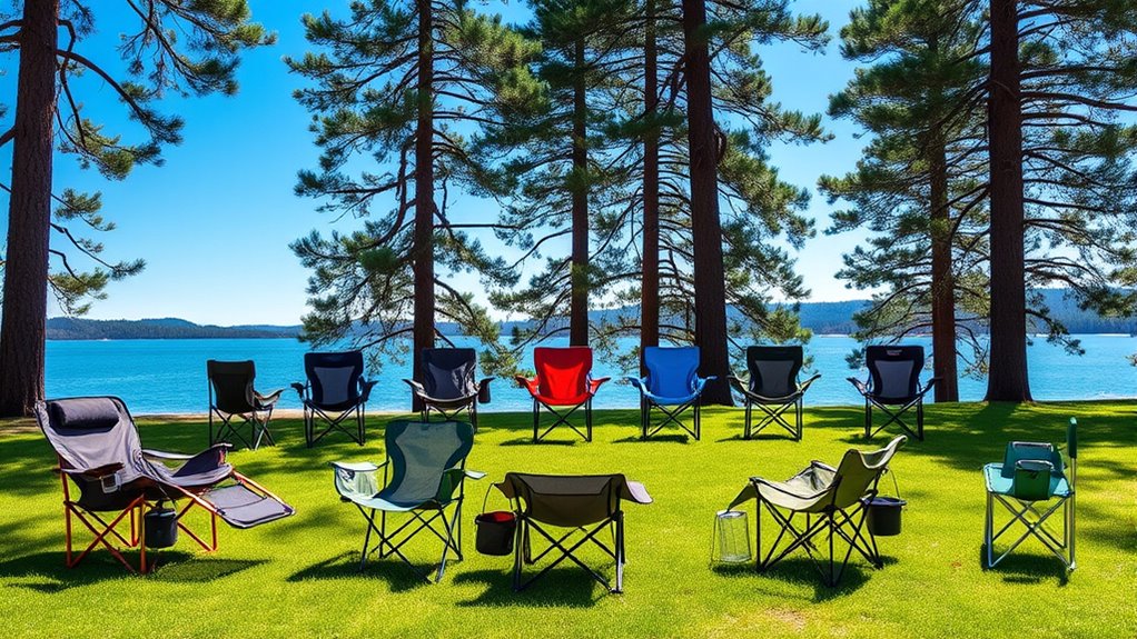 When choosing camping chairs, I look for something that balances comfort and durability for outdoor adventures. From oversized models with plush padding to lightweight, foldable options with sturdy frames, there’s a perfect fit for everyone. Features like supportive backrests, weather-resistant fabrics, and portability are my top priorities. If you want the best choices that won’t let you down, stick around—I’ll share what stands out in the top picks.