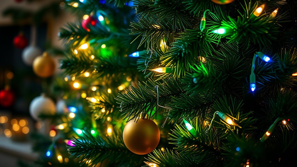 Choosing the right type of Christmas tree lights is essential because it affects the overall look, safety, and energy costs of your holiday display. Incandescent bulbs offer a warm, traditional glow, but they’re less energy-efficient and produce more heat, which can be a safety concern. LED lights, on the other hand, are highly energy-efficient, long-lasting—up to 50,000 hours—and emit minimal heat, reducing fire risks. They also tend to be brighter at lower power consumption, making your tree stand out. Some specialty lights, like fiber optics or projection types, create unique visual effects but may not be suitable for standard tree lighting. Ultimately, your choice depends on your priorities for safety, durability, and energy efficiency.