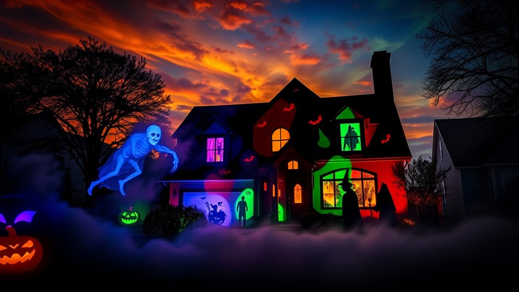 Choosing the right Halloween projector can truly transform your spooky setup into a mesmerizing spectacle—think of it as the Michelangelo of your haunted house. Whether you want a high-tech upgrade or a charming classic look, there’s a perfect fit out there. So, don’t wait for the next full moon; grab your favorite projector and start conjuring a haunting ambiance that’ll leave your neighbors bewitched. After all, Halloween’s magic is best when it’s just a click away.