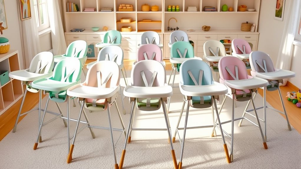 If you’re looking for the best high chairs of 2025, I’ve found some fantastic options that prioritize both safety and comfort. From versatile, multi-stage chairs like the Graco EveryStep to portable, easy-to-clean designs like the Munchkin Float, there’s something for every family need. Safety features, adjustable modes, and space-saving designs are key. Keep going, and I’ll guide you through the top picks and what makes them stand out.