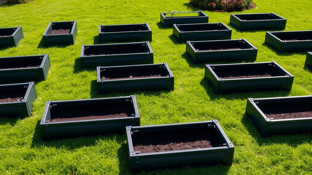 When choosing a metal raised garden bed, safety features play an essential role in ensuring a secure and hassle-free gardening experience. I look for beds with rounded corners and rubber edge guards to prevent injuries while handling or working around them. Properly designed drainage holes are vital, as they prevent water buildup that can lead to root rot and structural damage. Secure assembly with stable support bars and reinforced panels minimizes the risk of collapse or tipping, keeping the garden safe. Additionally, I prefer beds coated with non-toxic, environmentally friendly finishes that won’t leach harmful chemicals into the soil or harm plants. Clear assembly instructions and quality hardware also help avoid errors that might compromise safety, giving me peace of mind during setup and use.