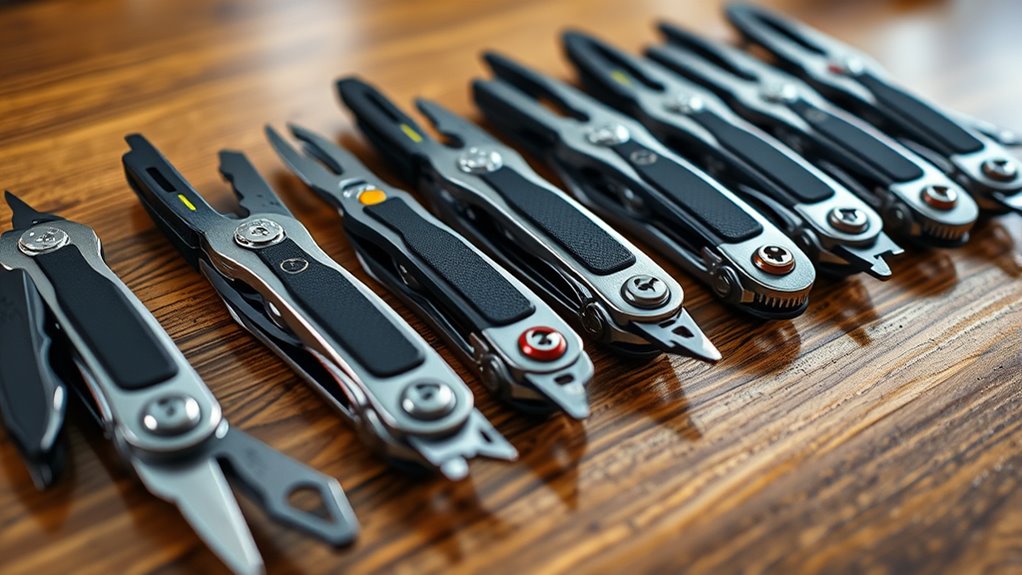 When choosing a multi-tool, I look for safety features like a lock-on switch to prevent accidental starts and a safety guard to protect my hands. An orbital action lock and quick-release blade system also add security and ease of use. I make sure it has a sturdy grip and a vibration reduction system, so I can work confidently without risking slips or fatigue. Safety always comes first in my workshop.